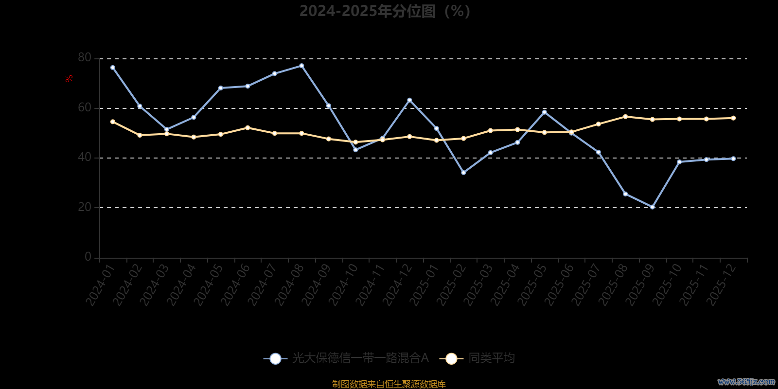 通过所选区间该基金净值增长率分位图贝思盈配资,可以观察该基金与同类基金业绩比较情况。图为坐标原点到区间内某时点的净值增长率在同类基金中的分位数。