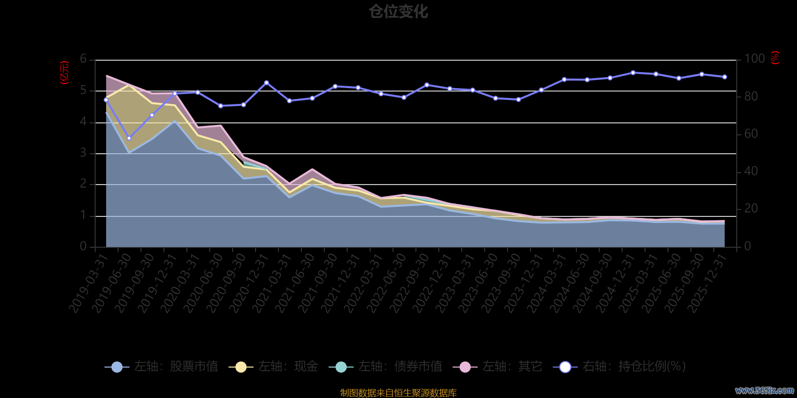 据定期报告数据统计,近三年平均股票仓位为87.79%,同类平均为84.04%。2024年末基金达到93.07%的最高仓位,2019年上半年末最低,为58.1%。