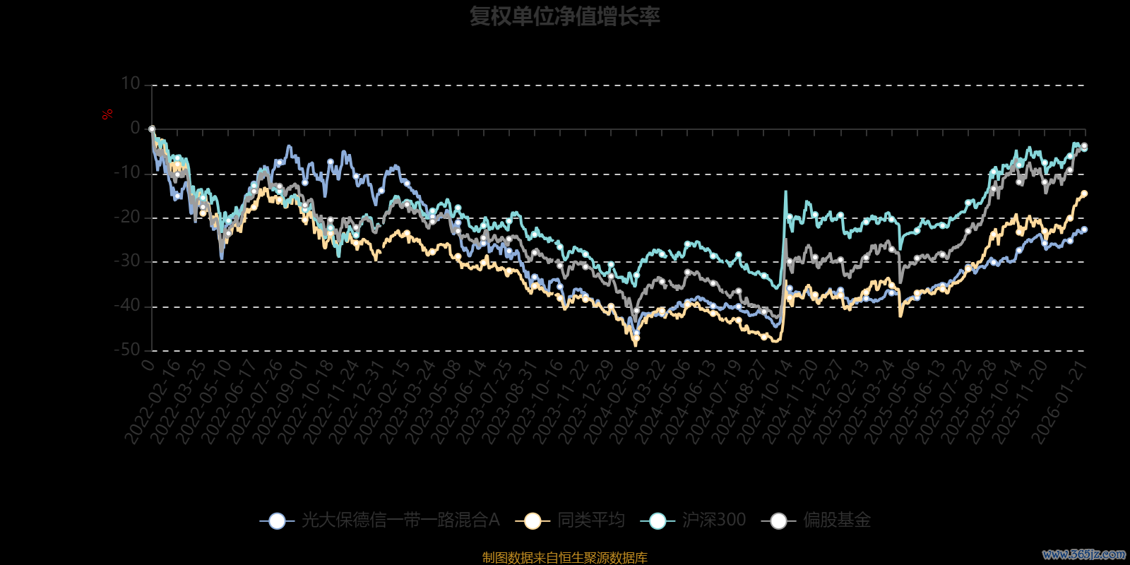 截至1月21日,光大保德信一带一路混合A近三个月复权单位净值增长率为4.46%,位于同类可比基金485/689;近半年复权单位净值增长率为13.12%,位于同类可比基金536/689;近一年复权单位净值增长率为26.88%,位于同类可比基金461/673;近三年复权单位净值增长率为-15.41%,位于同类可比基金355/396。