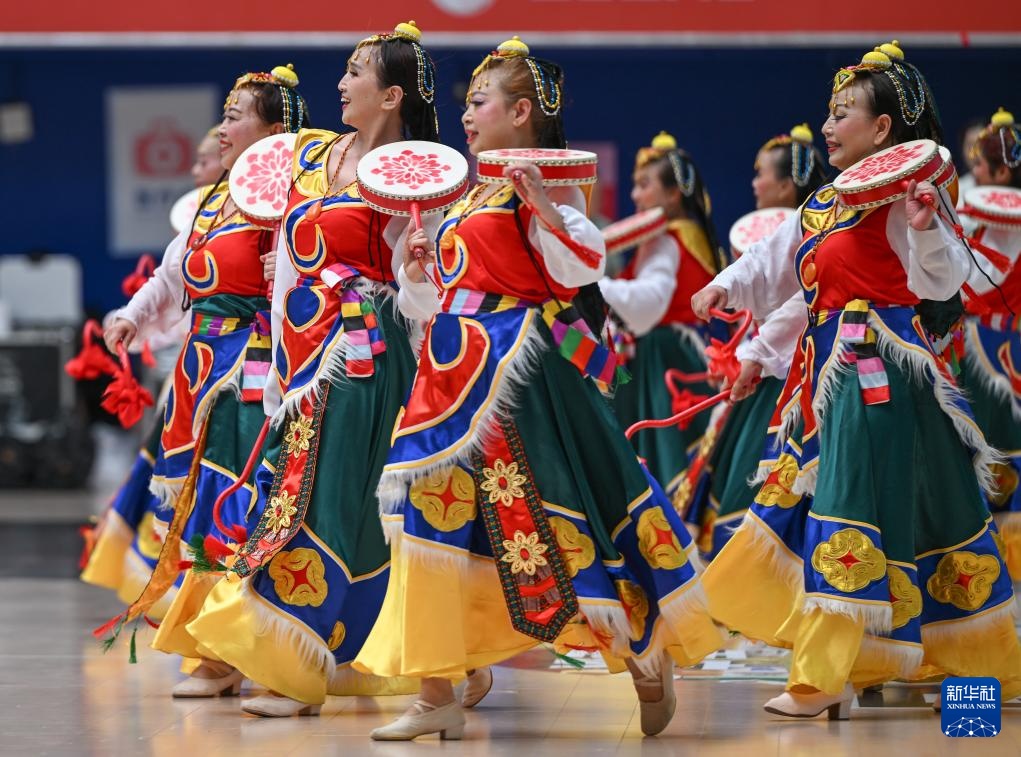 6月23日,在重庆市南岸区江南体育馆内,南山街道代表队表演节目。新华社记者 陈诚 摄