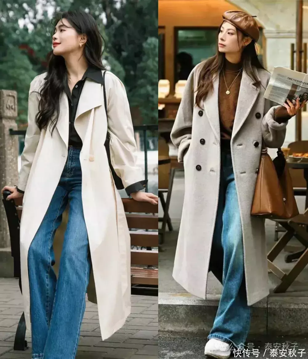如果你很喜欢自由洒脱的腔调,那一定要尝试一下牛仔阔腿裤与大衣的叠穿,可以穿出随性洒脱的时髦感。