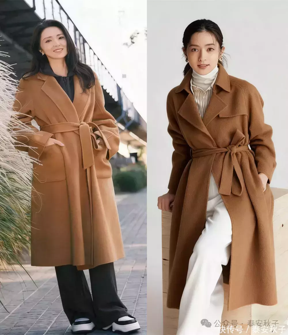 比如这件纯正的榛子色双面大衣,选择宽松的版型会更显大气。搭配白色小衫与米白色阔腿裤,会显得肤色更白皙干净,轻松拿捏高级与品味感。