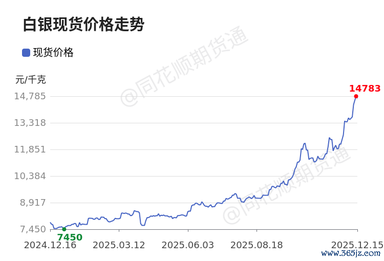 据同花顺(300033)iFinD数据显示,12月15日白银价格出现异动: